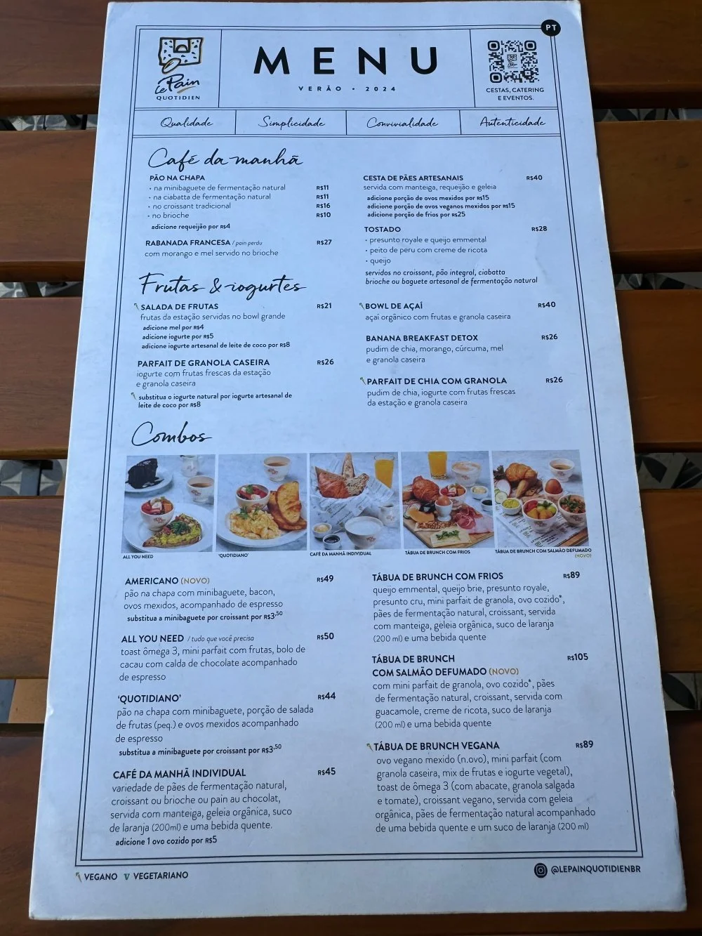 Menu kawiarni Le Pain Quotidien w São Paulo